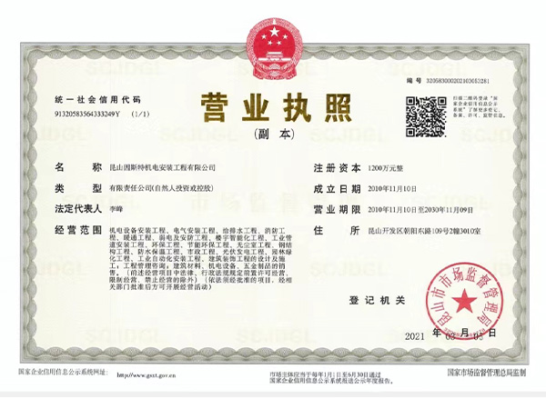 昆山因斯特機(jī)電安裝工程有限公司是一家擁有國(guó)家機(jī)電安裝資質(zhì)證書(shū)、國(guó)家建筑裝飾設(shè)計(jì)及施工資質(zhì)證書(shū)的工程公司。公司總部設(shè)立于具有“小上海”之稱(chēng)的昆山。公司設(shè)有工程部、財(cái)務(wù)部、采購(gòu)部、行政部、業(yè)務(wù)部以及售后服務(wù)部六大部門(mén),其中工程部又設(shè)有機(jī)電部、裝飾部、環(huán)保節(jié)能部。